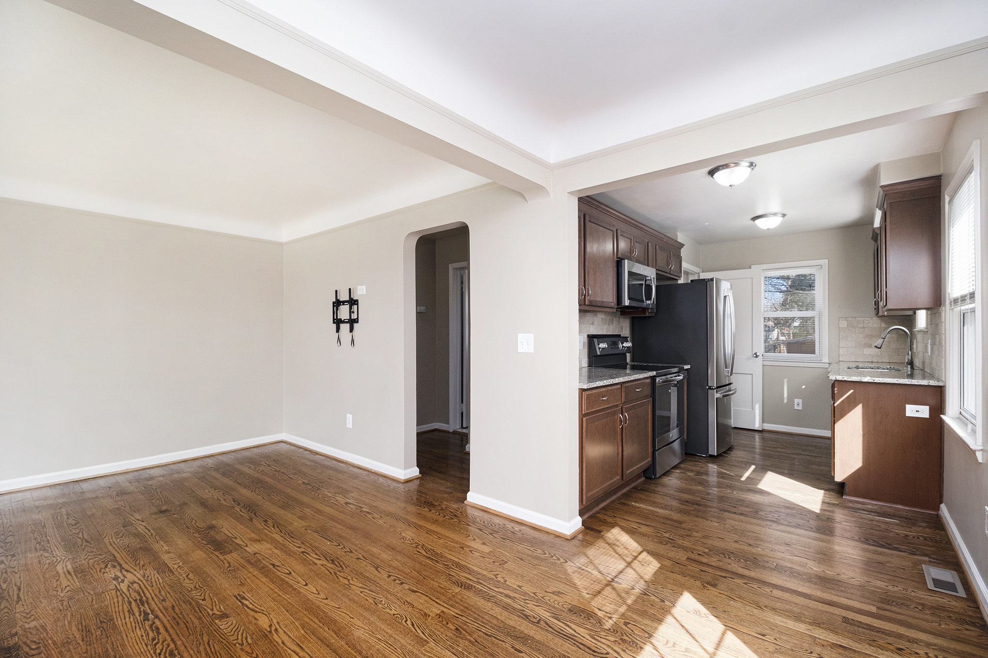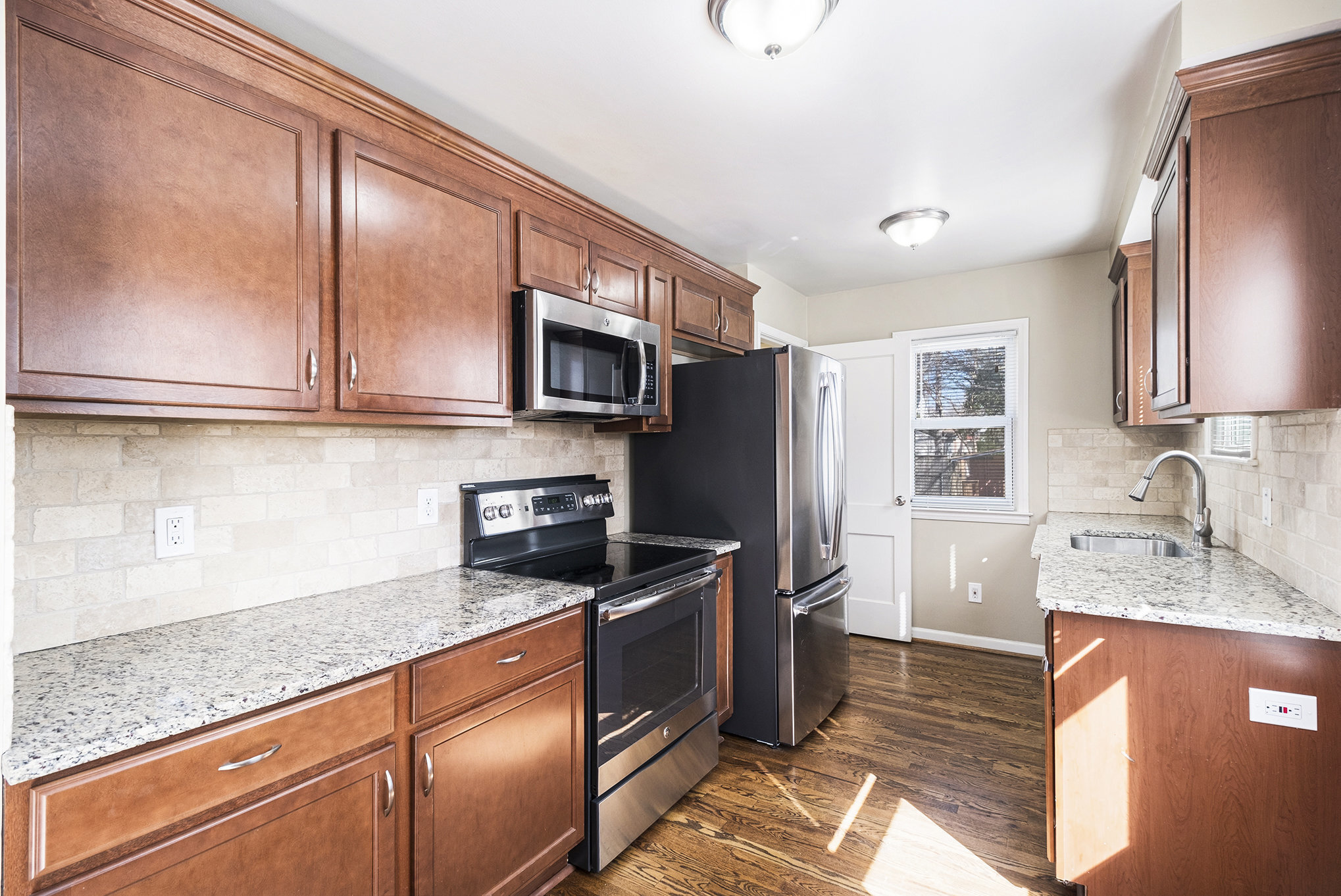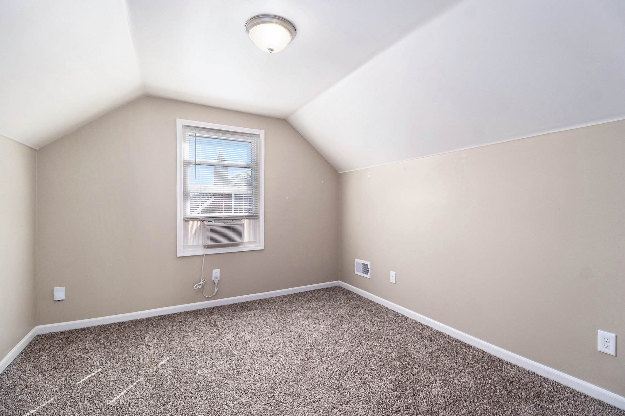 The kitchen has been beautifully updated with newer cabinets, granite counters, ceramic tile backsplash, and stainless steel appliances. You’ll appreciate the spacious dining area with ample table space. Down the hall, two bedrooms offer neutral decor and good natural light. The full bath has been updated with new paint and newer flooring. Upstairs, there are two more generously sized bedrooms with neutral decor and newer carpet.