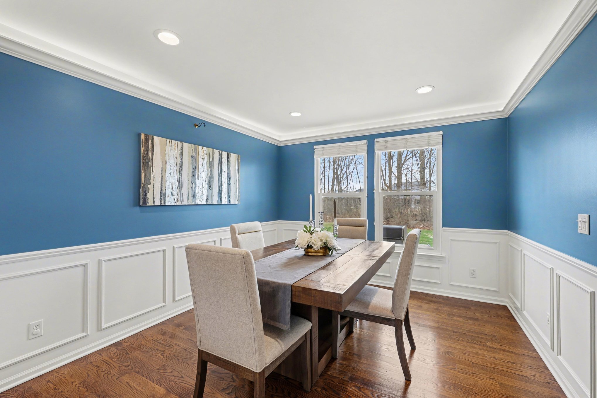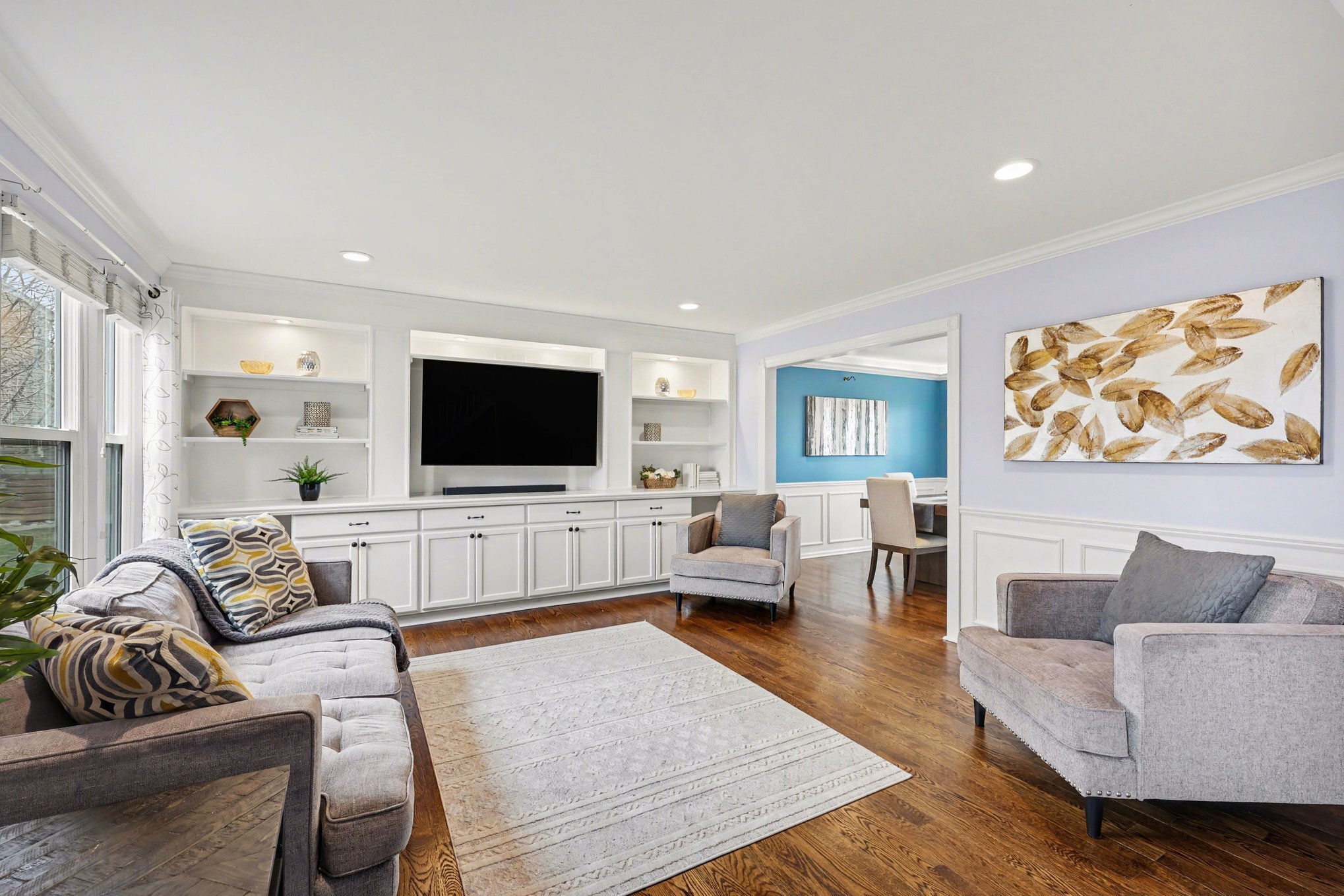 The layout makes sense right away, with an inviting two-story foyer and hardwood floors that carry a consistent design throughout the main level. Custom wainscoting and built-ins shape the living and dining rooms, giving each space definition while keeping them connected and easy to move through.