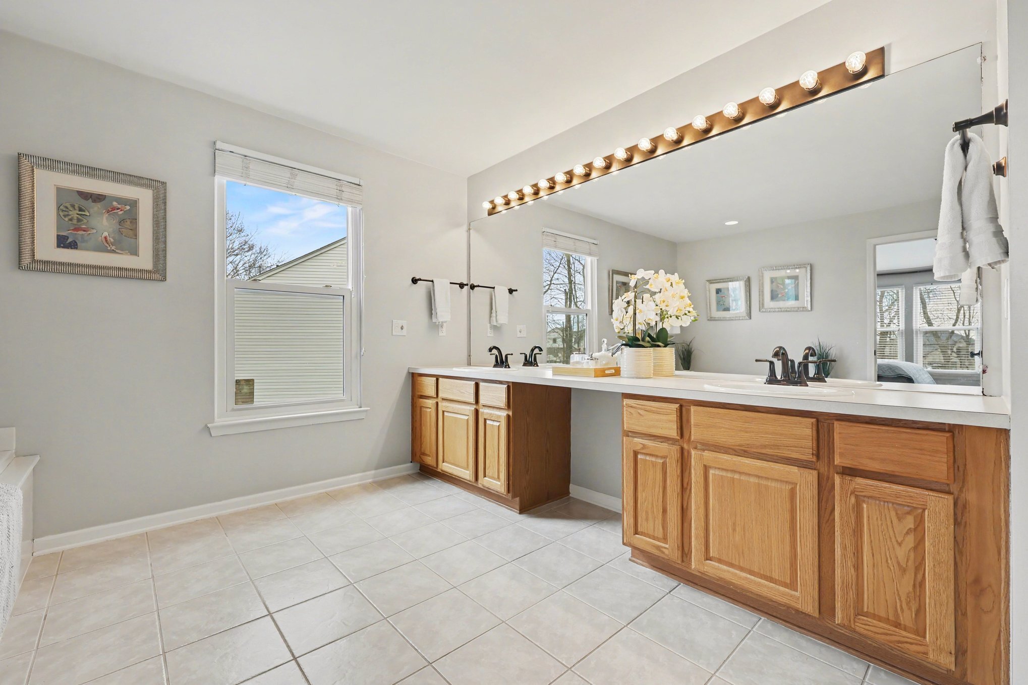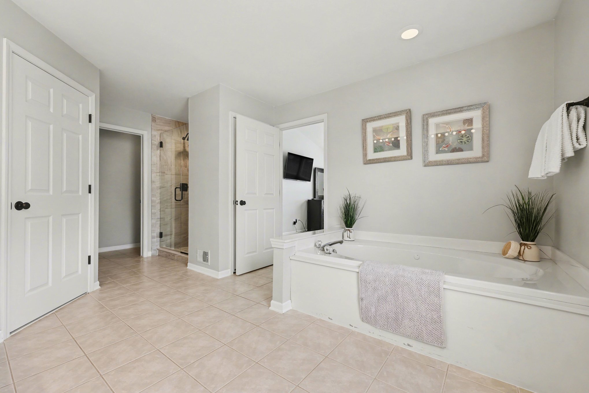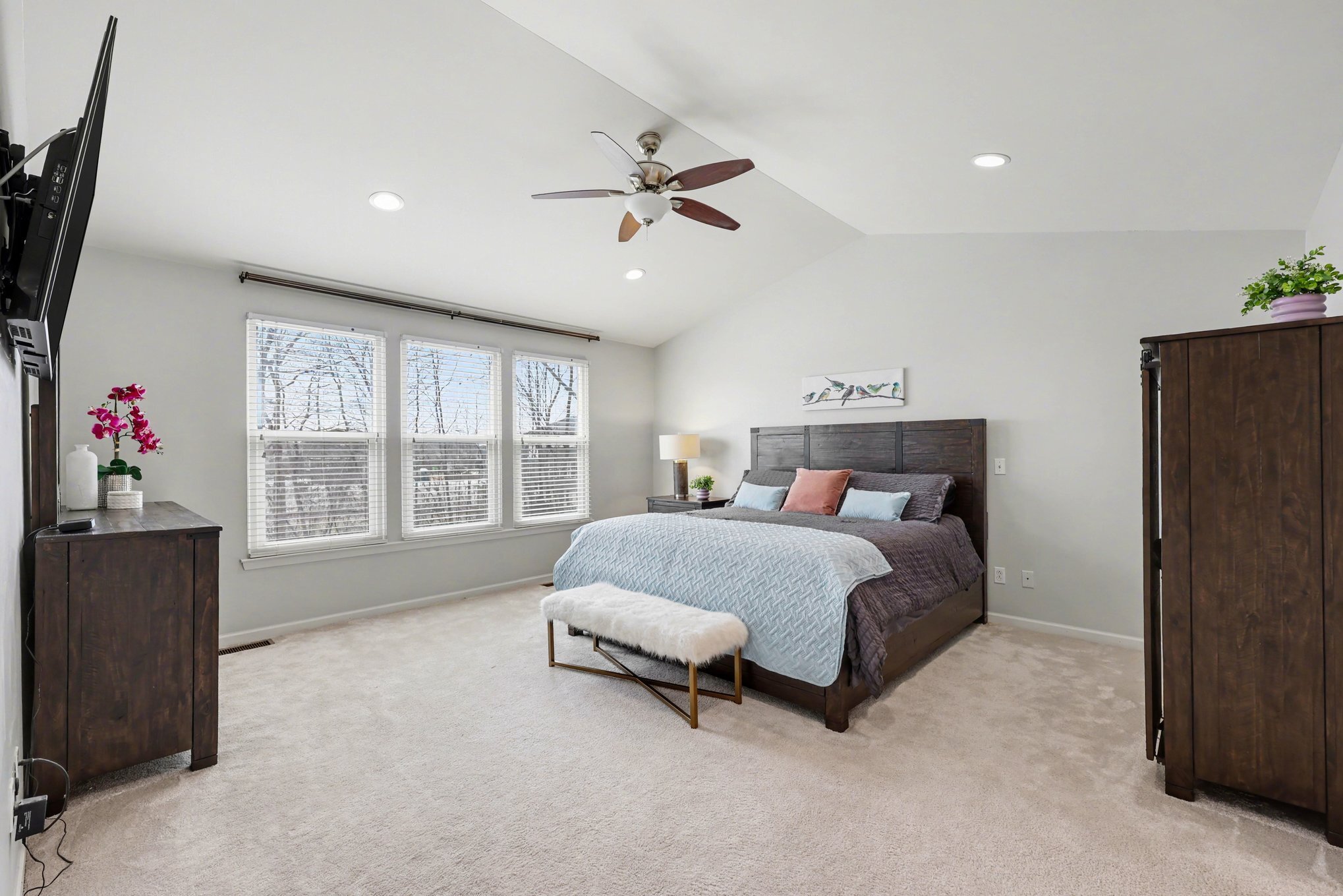 Upstairs, there are three amply sized bedrooms with generous closets, as well as the primary suite with a lovely treed view, which is both open and comfortable. Cathedral ceilings add height, and the oversized bath features a Jacuzzi tub, a remodeled euro-style shower, separate water closet, and a large walk-in closet.