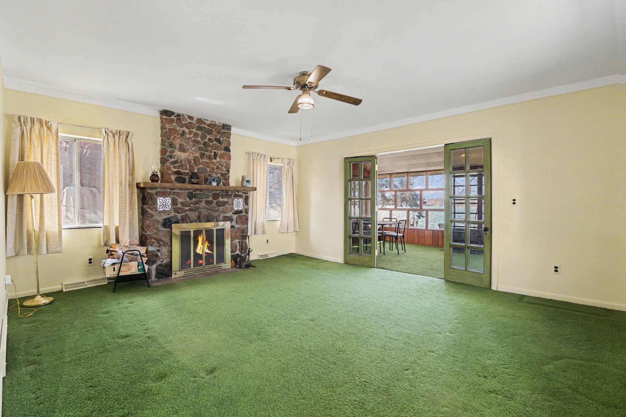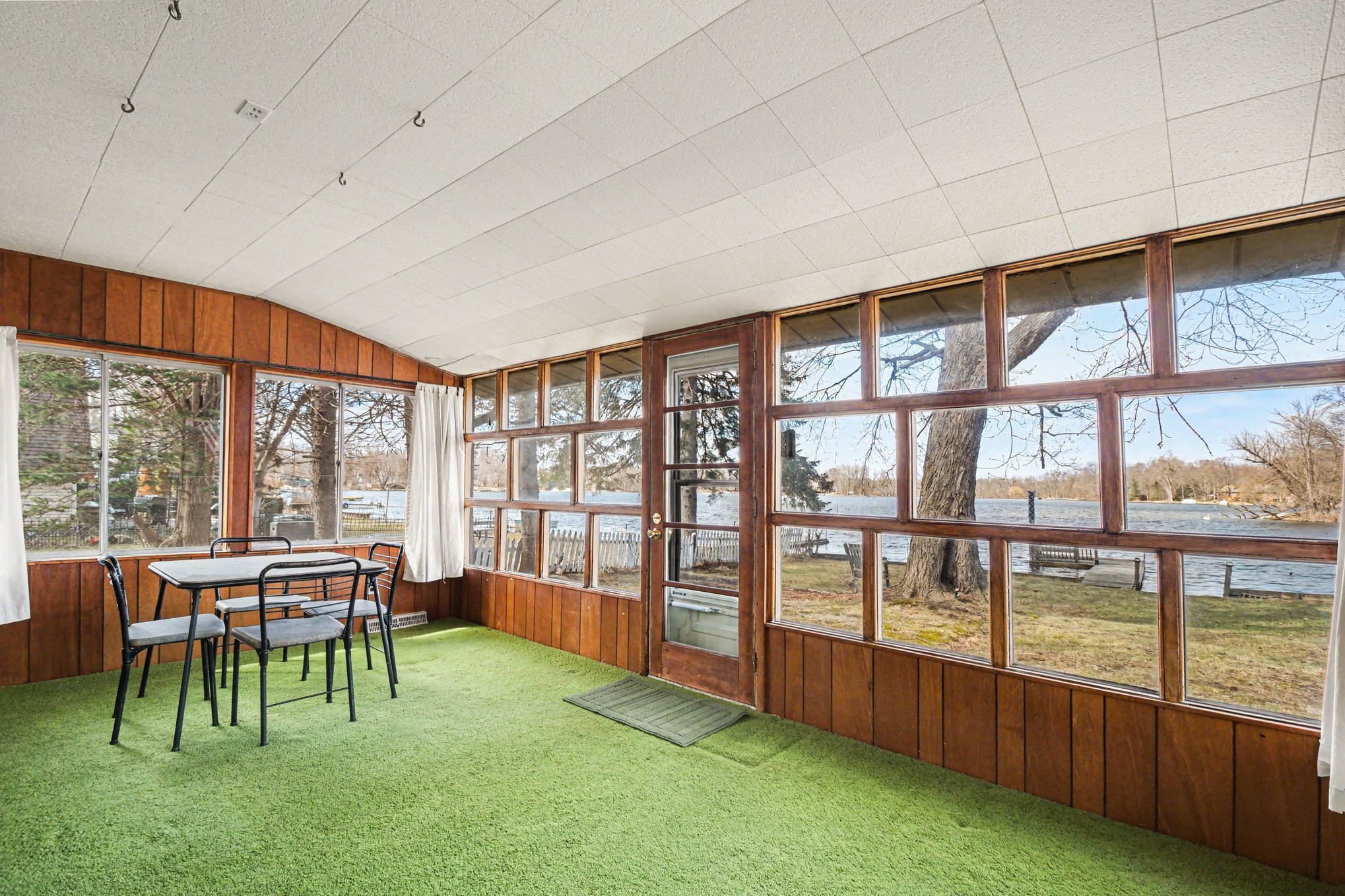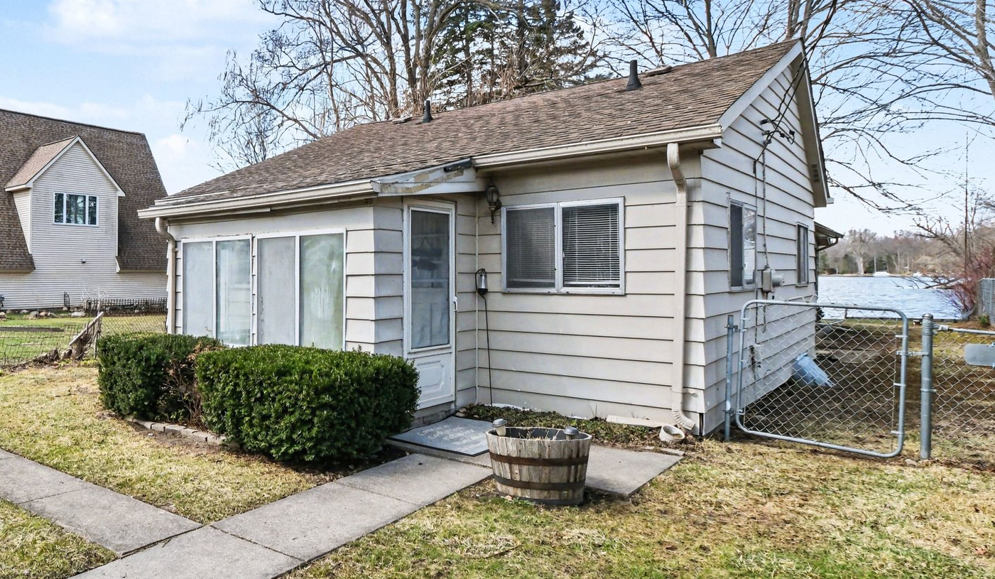 Inside, the feeling is warm and familiar—welcoming a houseful of laughter, sandy feet, and kids who’d rather sleep in lakeside tents than anywhere else. The enclosed sunporch greets you first, a natural drop zone for lake gear and yard games. Nearby, the laundry room offers space for full-size appliances, and the efficient kitchen is ready for easy meals shared without fuss. Two generously sized bedrooms are served by a full bath, while the family room draws everyone in with lake views and a stone fireplace perfect for movie nights or a spirited game of Euchre when the air turns cool. Just beyond, the four-season porch opens effortlessly to the backyard and water’s edge, creating that seamless indoor-outdoor flow where doors stay open and time slips by unnoticed.