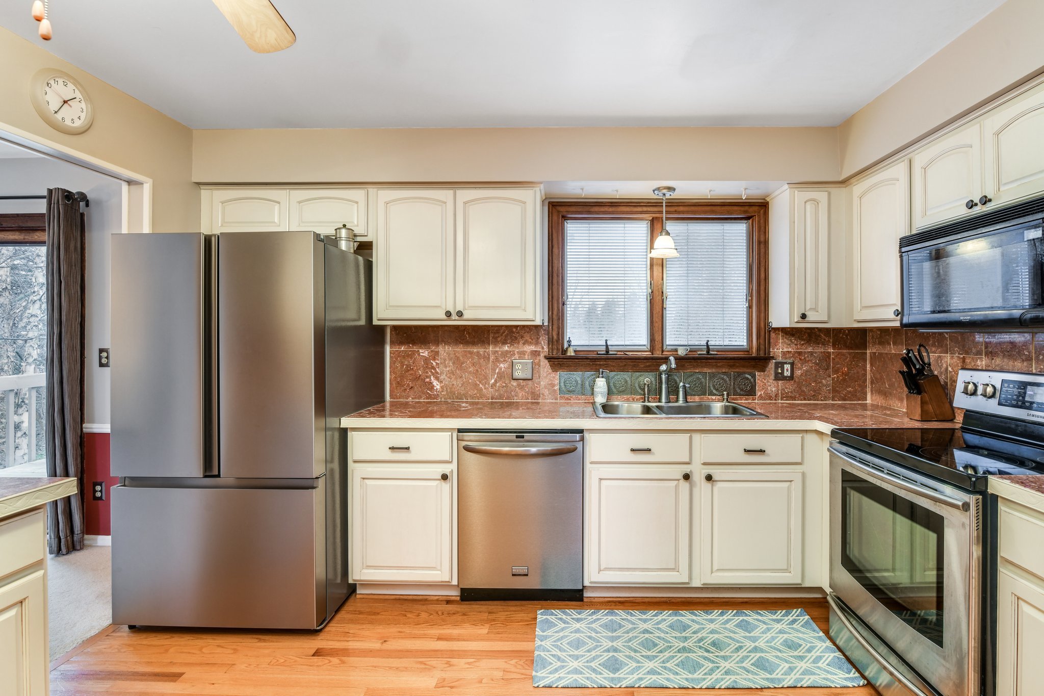 A rare, beautifully updated quad-level with loads of updates and storage everywhere! The spacious entry opens to a sun-drenched living room with high ceilings. The kitchen is adjacent to the dining room and offers white cabinetry, marble counters, and newer stainless appliances. You’ll appreciate the space of the remodeled family room that can host any gathering! With a serving area with sink, new luxury vinyl flooring, cozy fireplace, and doorwall to the patio and large backyard, entertaining is seamless! The bedrooms are all generous including the master suite with ceramic bath and walk-in closet. The basement is finished and freshly painted, featuring a private office, a large laundry, a lav, and tons of storage. Updates include furnace, A/C, H2O, roof & gutters, and gorgeous composite front porch. Private beach access to all-sports Lake Voorheis with a sandy beach, playground, and picnic area! Tons of neighborhood activities are a highlight! More features in docs!