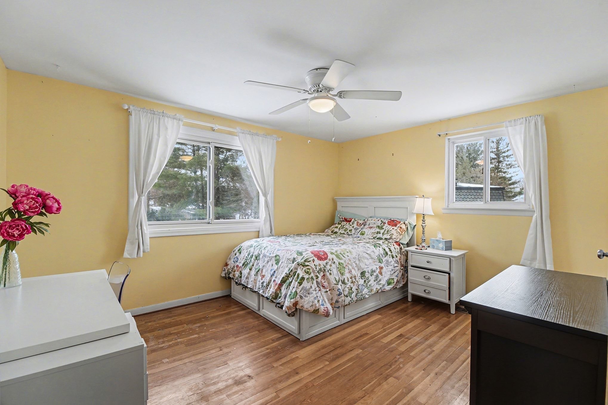 With 2,000+ square feet of living space, this home features a spacious primary suite, ensuring a private retreat at day's end. The additional three bedrooms provide versatility for a growing household or the perfect home office setup. A large three-season room invites you to bask in serene garden views, while the stamped concrete walkway and beautifully landscaped surroundings offer a picturesque setting.