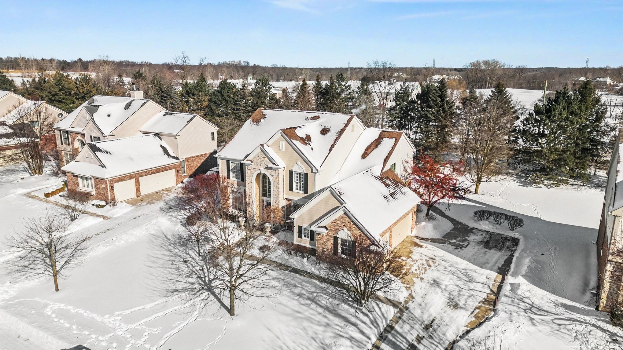 A cozy den tucked between the great room and home office is a delightful surprise—offering flexibility as a second workspace, TV room, or playroom. The two-story great room feels light and open, with soaring ceilings, rich hardwood floors, and a beautiful fireplace—an ideal backdrop for Michigan winters.