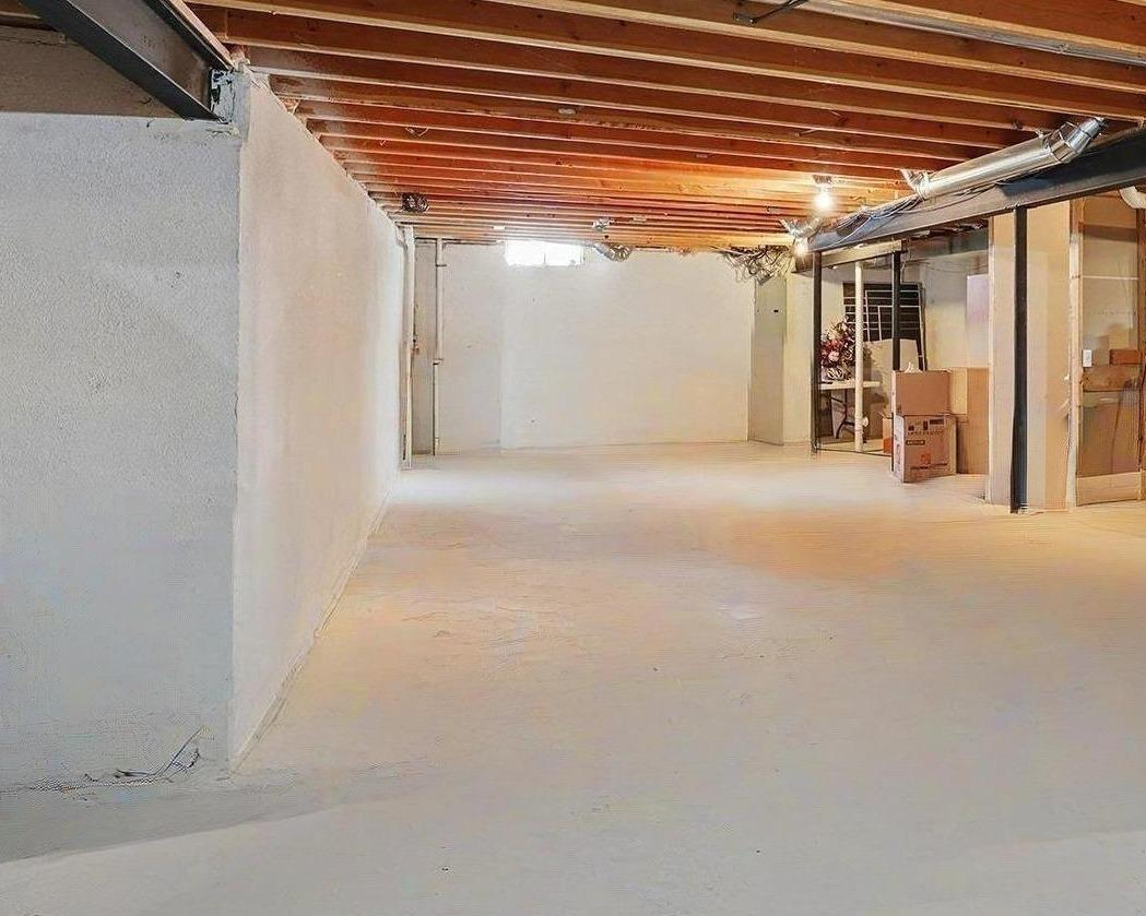 A centrally located T-staircase connects the foyer and kitchen to the upper level. Upstairs, the spacious primary suite features dual walk-in closets and a private bath with a separate soaking tub and shower. Three additional generously sized bedrooms and a full ceramic hall bath complete the upper level. The large unfinished basement offers exceptional storage and outstanding potential for future living space.